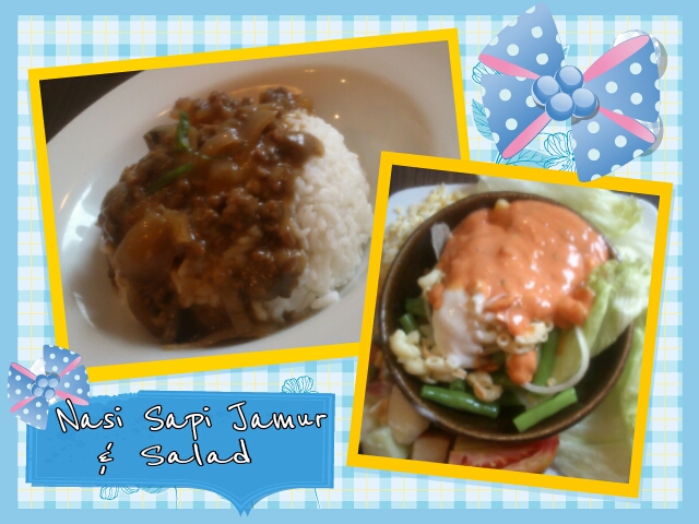 Saat makanannya datang, saya lumayan kecewa karena tampilannya tidak cantik. Dan setelah dicicipi juga mengecewakan. Duh! Rasanya gimana yaaa, gurih nggak, manis juga nggak, pedes juga nggak, agak plain gitu deh. Daging sapi dan jamurnya juga pelit, gak seimbang sama porsi nasinya (~_~メ).