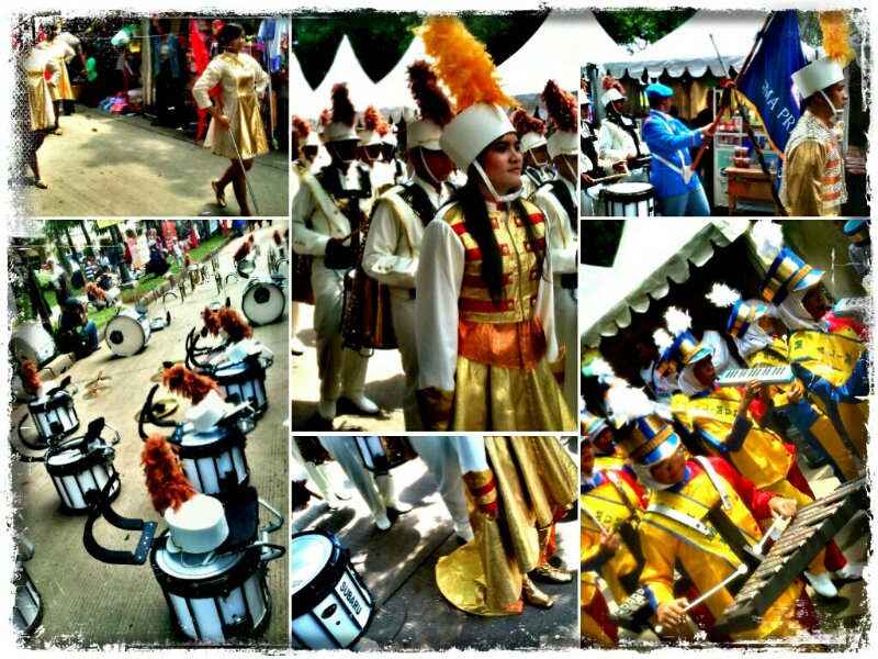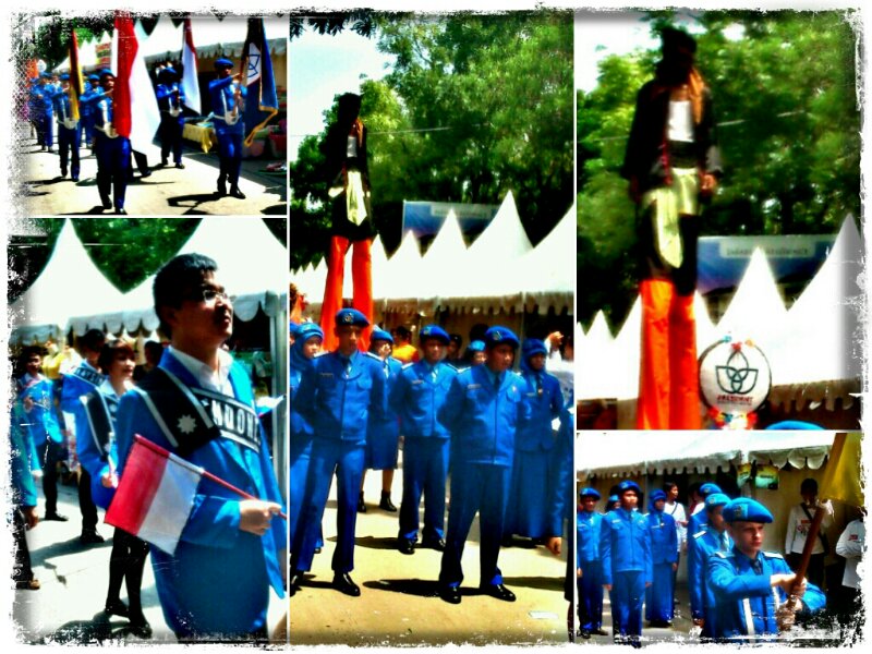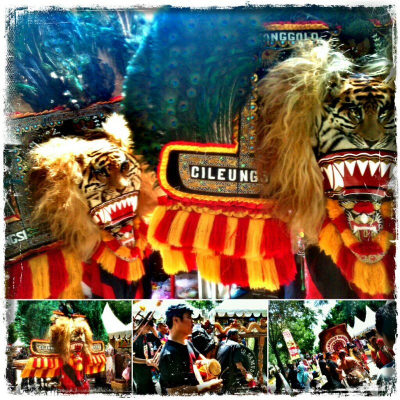 Saya sampai di sana jam 9 pagi dan hanya berniat untuk jajan-jajan di Bazaar sembari nunggu Mama kerja. Saat itu para performer udah pada siap, sayangnya para tamu undangan pada belum datang. Hihi, lucu deh dengar celetukan-celetukan yang mau tampil tersebut, mereka itu udah pada siap dari jam 5 dan acara dijanjikan selesai jam 9, ternyata mereka baru tampil jam 10 lewat!! Kasihaaan… Saya paling kasihan sama yang naik egrang tinggi banget, untuk istirahat akhirnya dia bersandar dan pegangan pada dahan pohon, hihihi…