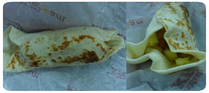Striker juga pakai roti tortila, tapi cara bungkusnya beda. Isinya (kalau gak salah) ada kentang, smoke beef, keju, dan mayonais.