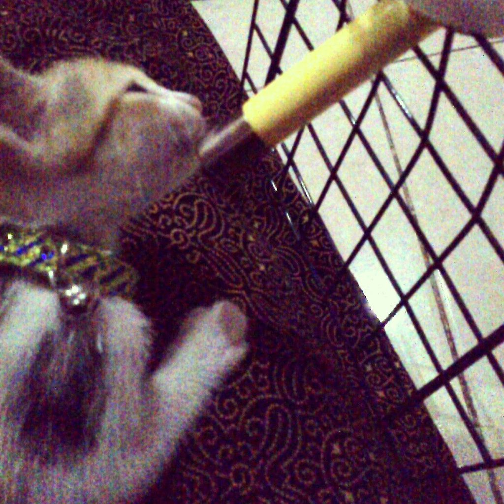 Kucing yang cepet dapet nama adalah yang kuning, Silly! Gara-garanya pas mereka udah mulai bisa main-main, udah gak galak, dan udah mulai bersosialisasi, dia kecebur got aja gitu! Awalnya saya bingung, ini kok ada kucing item yang ngikutin saya terus, ternyata itu kucing saya.. huahahaha!! Karena itu dia saya kasih nama Silly! Lucu dan sedikit bodoh. 😉
