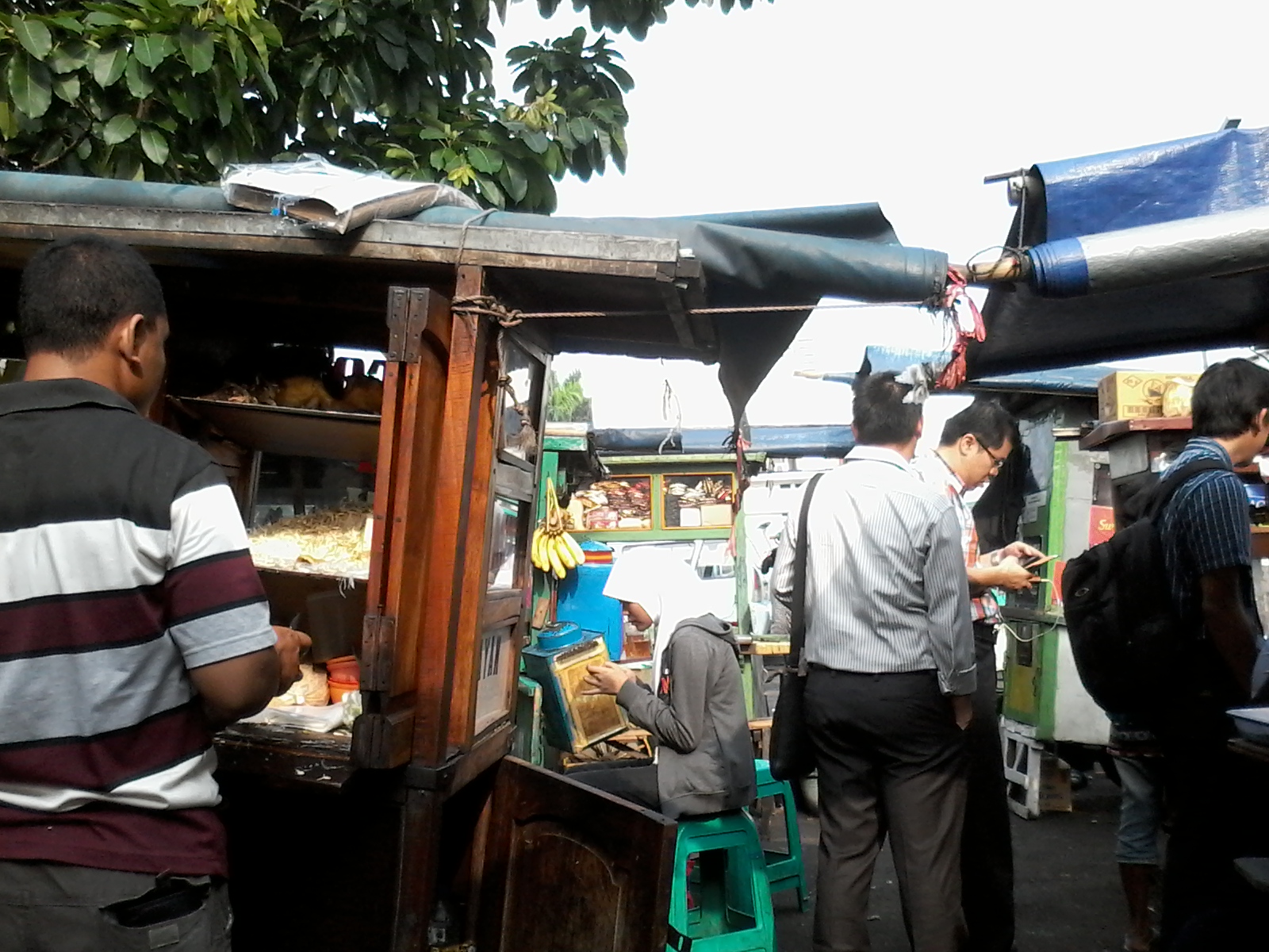 Sampai di Stasiun Kota, kami langsung nyari sarapan di deket stasiun. Saya makan soto & minum teh hangat. Tapi makannya gak puas karena harus buru-buru sebelum Satpol PP datang menertibkan mereka.