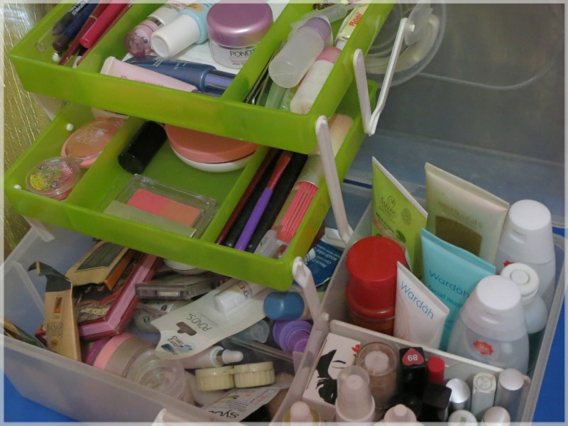 Tadinya ini kotak untuk perkakas dokter gigi pas masih ko-as.. Setelah gak kepake, ya sudah aku manfaatkan utk tpt makeup & skincare, aku boleh beli2 asal gak melebihi kotak ini.. Ini juga cukup beruntung bs dapetinnya, soalnya pas mamaku tertarik & pengen beli juga udah gak ada yang jual yg spt ini, kebanyakan spt punya tukang banget. Hehe..