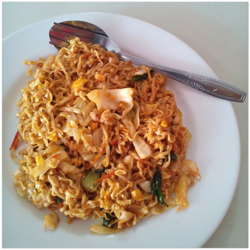 Rasanya? Standar aja seperti mie goreng pada umumnya tapi minus kecap dan lebih pedas, bisa diterima di lidah saya yang berarti gak keasinan dan gak micin banget. Pedasnya? Di lidah gak bergitu pedas, tapi saya lagi sariawan di bibir bawah, dan mie ini sukses bikin nyut-nyutan. Haha..