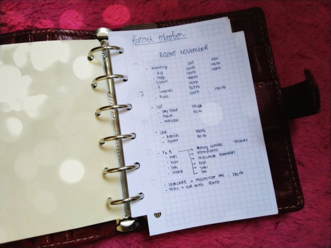 Sudah bulan Nopember!!!! Setiap awal pergantian bulan aku selalu senang, senang melakukan rutinitas saat pergantian bulan yaitu rekapitulasi lalu bikin budget untuk bulan berikutnya. Rasanya agak campur aduk sebenarnya karena aku selalu ada rasa bersalah dari hasil evaluasi sebelumnya, hahaha, tapi lalu selalu optimis kalau bulan berikutnya akan lebih baik.