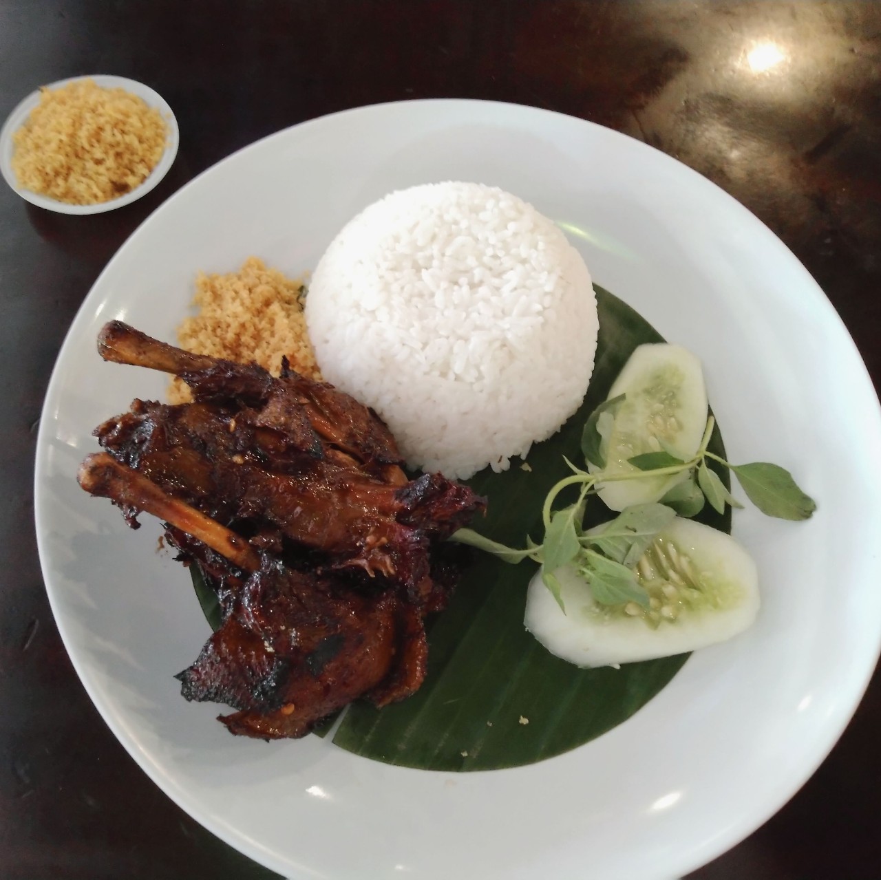 Kalau pesen ayam, bagian yang jadi favoritku adalah paha. Untuk bebek aku sukanya pesen dada, soalnya dapat dua potong. Daging dada bebek juga lebih tipis, jadi bumbunya tetap meresap dengan baik. Di Bebek Kaleyo yang bikin spesial adalah kremesnya, pesan kremes tambahan adalah suatu keharusan!