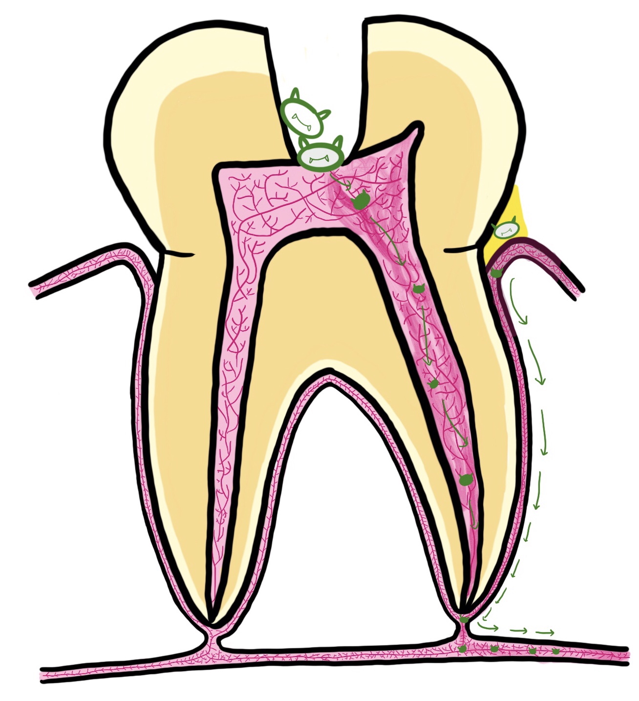 Idealnya, gigi dan gusi adalah jaringan yang “kedap”, sehingga meskipun di sekitarnya ada bakteri, bakteri tersebut tidak bisa masuk ke dalam gigi dan gusi.