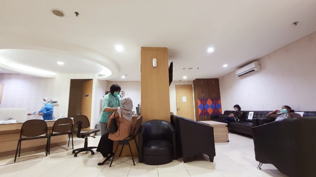 Aku dapat jatah vaksinnya di RS Primaya di ruangan MCU. Saat masuk ke Rumah Sakit seperti biasa dicek dulu suhunya dan dikasih sticker di baju. Sampai ke ruangan MCU kita registrasi dulu dan isi formulir, setelahnya cek tensimeter dan cek suhu lagi, jika semuanya oke lalu menunggu untuk dipanggil vaksin.
