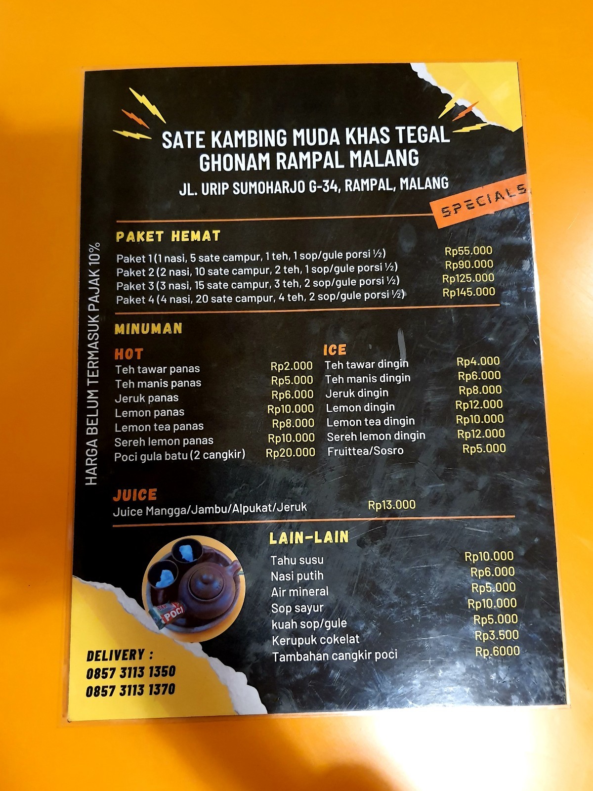 Alhamdulillah akhirnya kami bisa sepakat seiya serasa saat makan di Sate Kambing Muda Ghonam Asli Tegal. 🙂