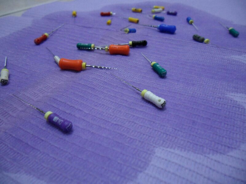 Okey, di Weekly Photo Challenge yang temanya Color kali ini saya mau cerita tentang file. File ini digunakan dokter gigi untuk melakukan perawatan saluran akar. Cara kerjanya gini, jika ada suatu gigi yang terinfeksi dan infeksinya udah sampai saluran akar, saluran akar itu harus dibersihkan dengan jarum-jarum ini lalu diisi dengan bahan yang menyerupai pulpa, biasanya gutta percha.