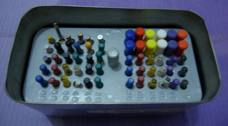 Saya termasuk suka melakukan perawatan saluran akar atau mengkilik-kilik saluran akar, walau stress juga kalau melakukannya di gigi susu soalnya mulut mereka kecil dan file yang paling pendek pun (21 mm) masih kepanjangan untuk mereka. Saya suka perawatan saluran akar, tapi untuk bersihin alatnya? Grrrr… kecil, tajem, ringkih. ~(+﹏+)~