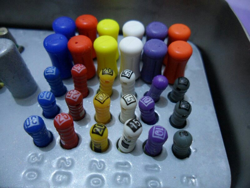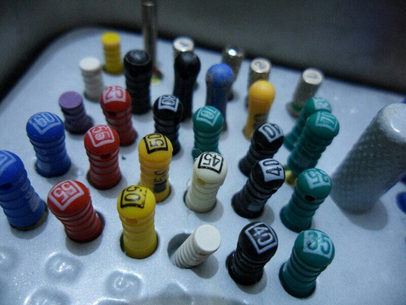 Endodontic files punya color coding system yang menunjukkan ukuran dari file-nya, jadi cukup liat warnanya udah bisa tau ukurannya berapa.