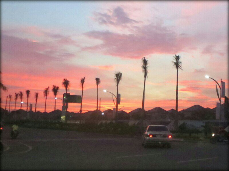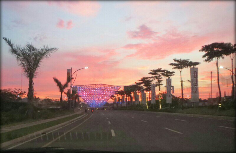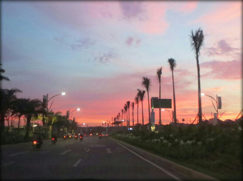 Yup! Foto-foto di post ini saya jepret pada saat mengendarai mobil. Melihat suasana dan kelap-kelip lampunya bikin saya gatel ambil kamera dan mengabadikan momen ini. Langitnya Subhanallah sekali ya!!!