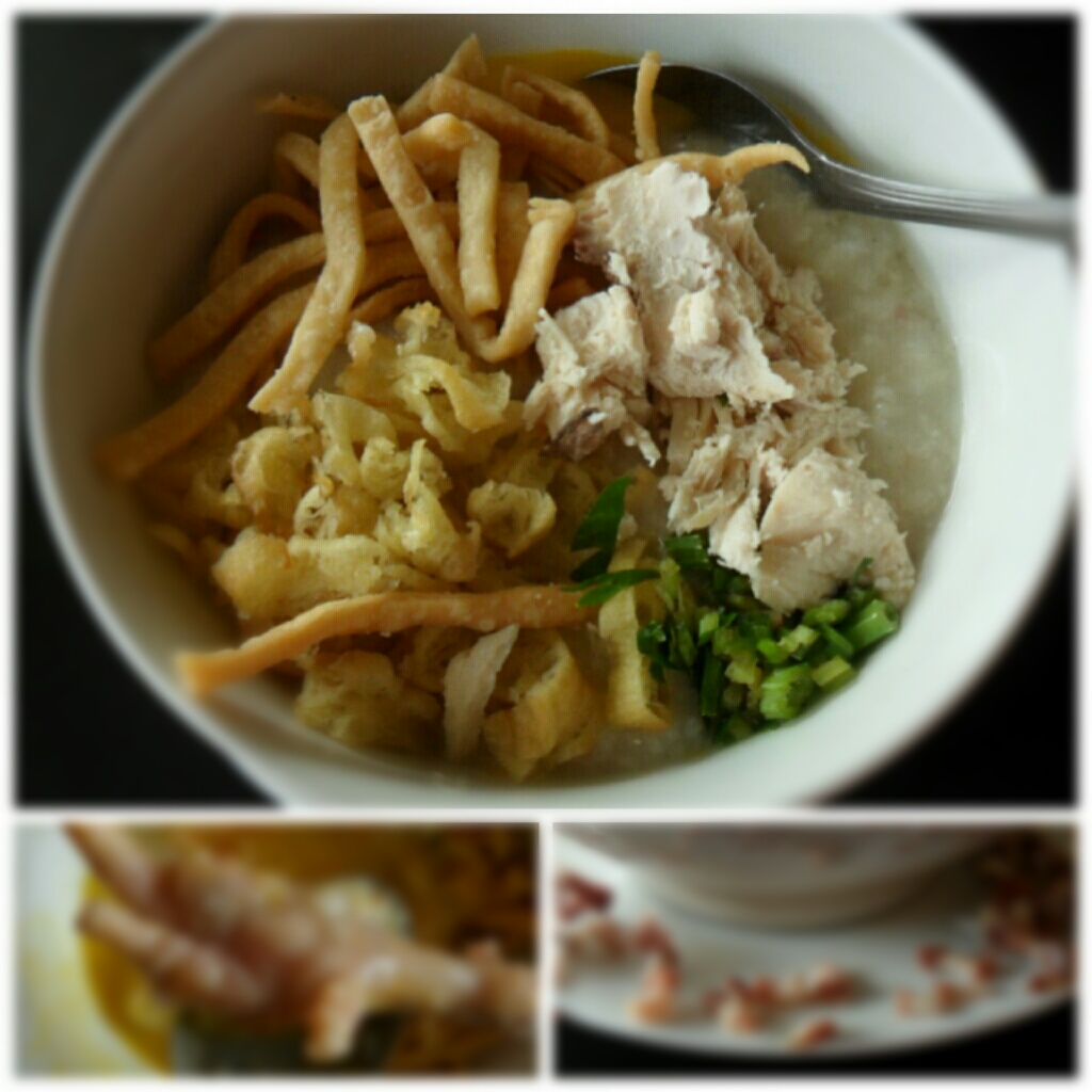 Rasa buburnya lumayan lah, tapi saya lebih suka rasa bubur ayam pemuda yang spesial. Daging ayamnya gede-gede potongannya, untuk saya yang kurang suka ayam bagian dagingnya, ini masih tolerable soalnya empuk dan gurih. Taburannya pas. Telornya gak mateng, tapi ya sudahlah, gak bikin eneg untungnya. Dan cekernyaaa? Tersembunyi di bawah bubur. Cekernya cuma dapet satu, kulitnya empuk dan gampang terlepas dari tulangnya! Saya penyuka kulit, jadi suka lah sama si ceker ini. Yummy.. :9